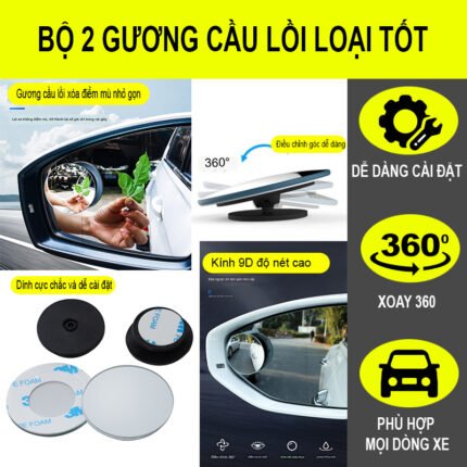 Gương Cầu Lồi Hình Chữ Nhật Cao Cấp Gương Cầu Lồi Ô Tô Mini Xoay 360 Giúp Tài Xế Lái Xe An Toàn